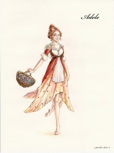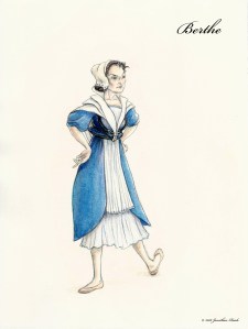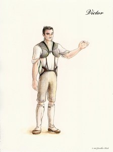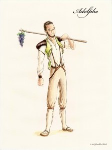 The common everyday people adhere to the basic aesthetic themes set out for the show, everyone is individual with small cues to designate age and station such as wearing an apron, the length of a man’s trousers, or wide collars. Caleb was a big proponent for individuality on all levels of the show. From a story telling perspective it made the most sense to him to give personalities to all of the characters so as to better plot their reactions to each other, which is exactly how I was approaching designing the main characters so we extended that expression of personality to the secondary characters. We brainstormed the basis of the characters and then I took to the next step with their visual design and solidified their personalities with a written breakdown of each character which you will see if click into their pictures. Caleb also suggested that we name the secondary characters after the artists who created the original Giselle, adding another layer of homage to them.