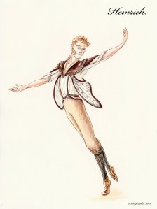 Caleb suggested that it be kept in a “once upon a time” period where there was more freedom to invent and fuse the best ideas of both worlds. So I came up with the idea of a medieval setting reinterpreted through a roughly Art Nouveau lens, bringing together the middle ages and the turn of the century styles.Aspects of traditional German peasant garb were incorporated to lend a sense of place to the style. As the designs progressed I also pulled several aspects from the original designs by Paul Lorimer and the, arguably, more ubiquitous designs of Alexander Bennois to pay homage and acknowledge the history of the ballet itself.
