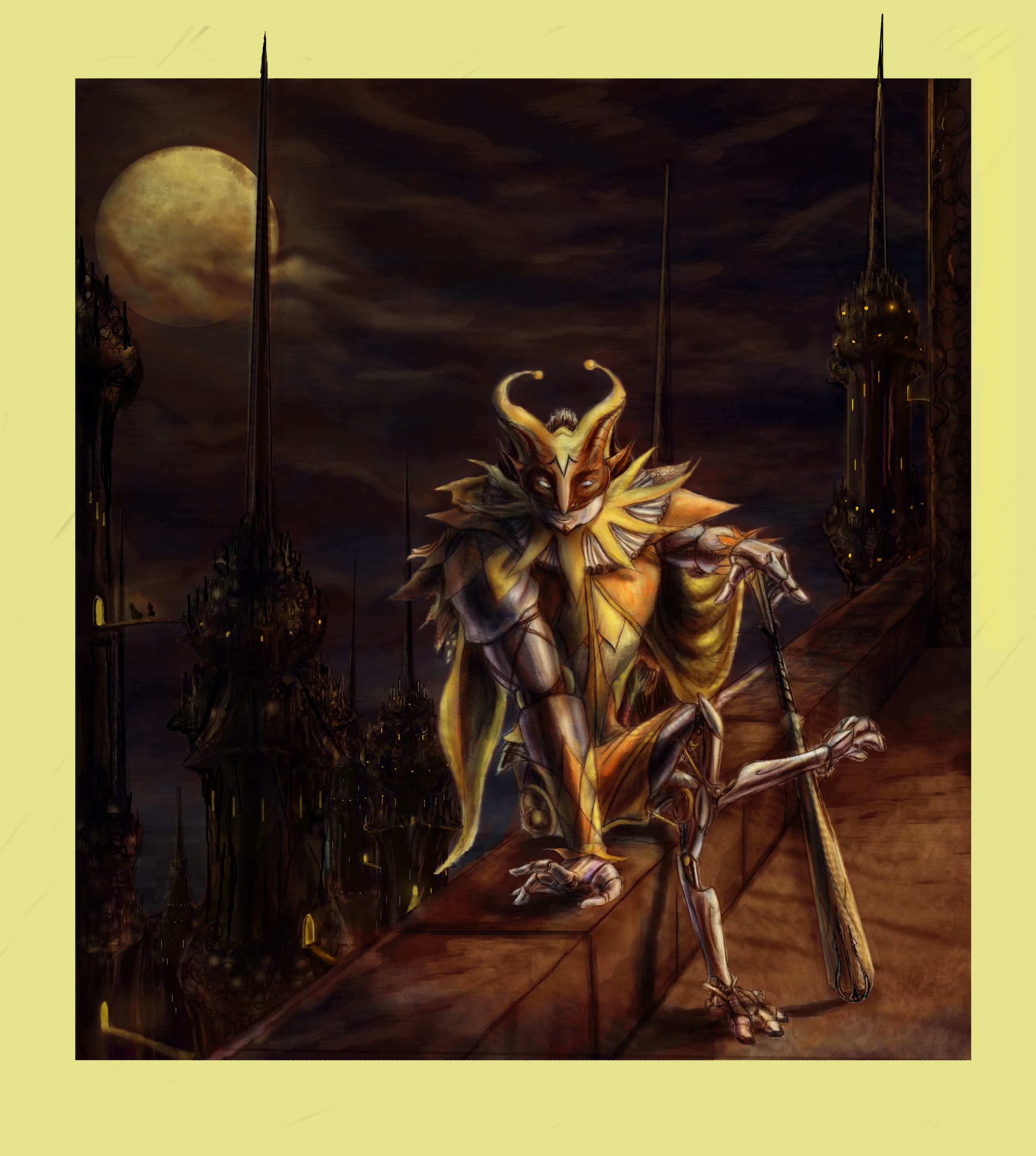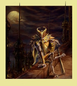 The largest, strongest, yet most acrobatic of Drosselmeier’s elite, the Harlequin is equipped to jump higher, tumble easier, and crush foes more dexterously than the other Marlequins. His feet also allow him to grip sheer surfaces and he wields an ivory plated batte known as the Slapstick. Cunning and diabolically tricky he sophisticatedly dispatches Drosselmeier’s enemies, often dropping with stealth from the shadows or with titanic force built from the momentum of a summersault, his mischievous grin always in place.